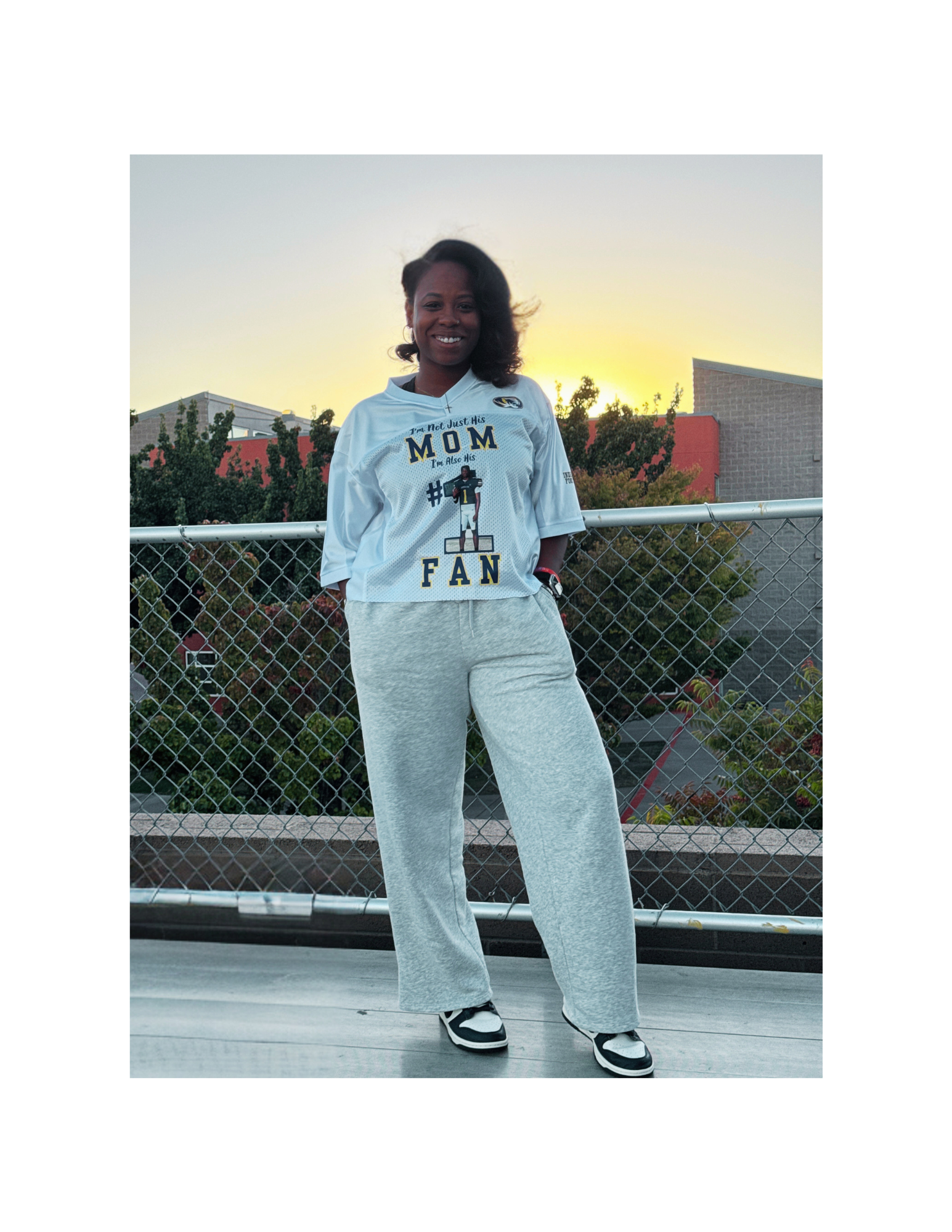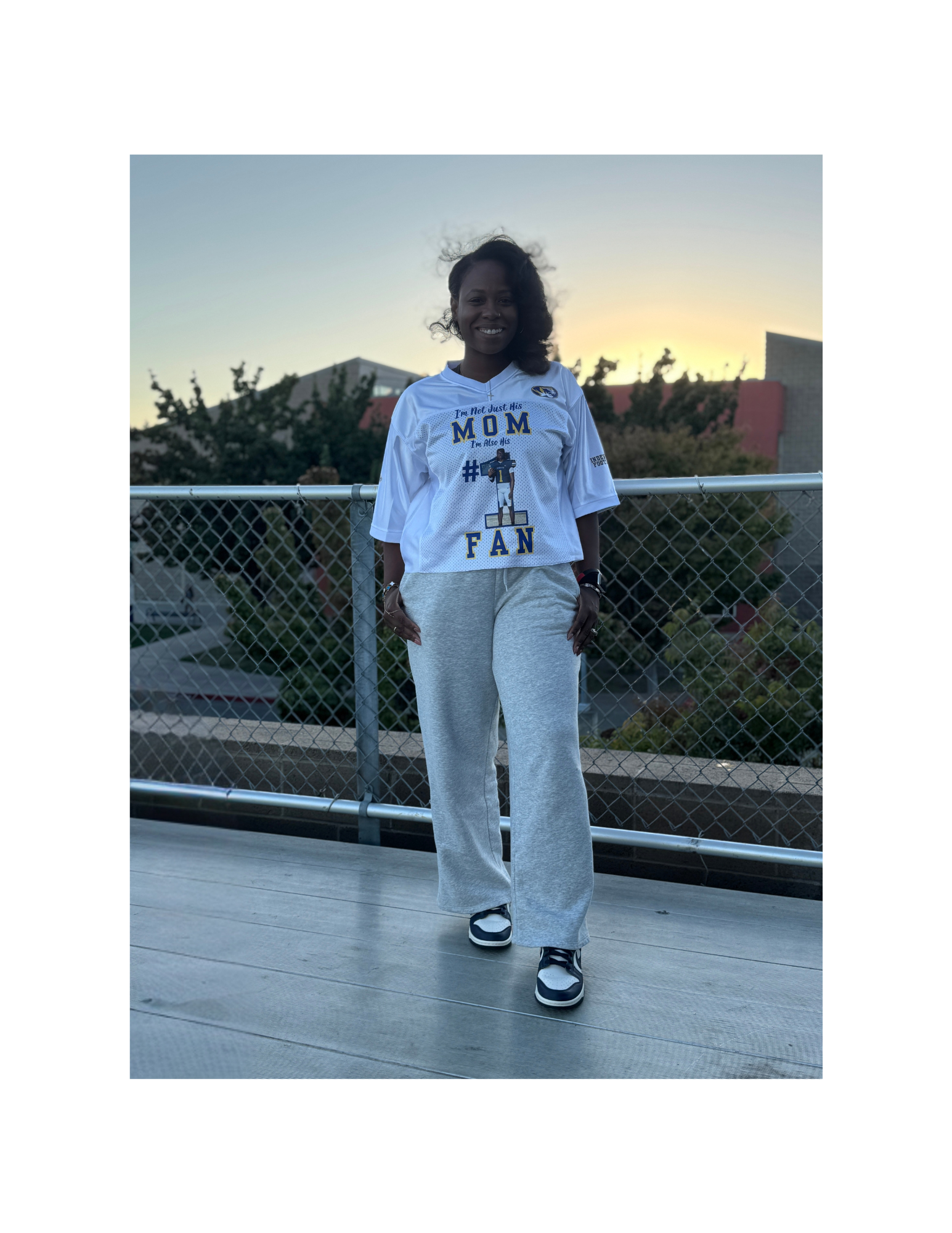 Cheer on your athlete with pride and love by rocking this custom jersey because you're not just their MOM, you're #1 FAN! Graphic design can be customized with school colors, player's number and picture.